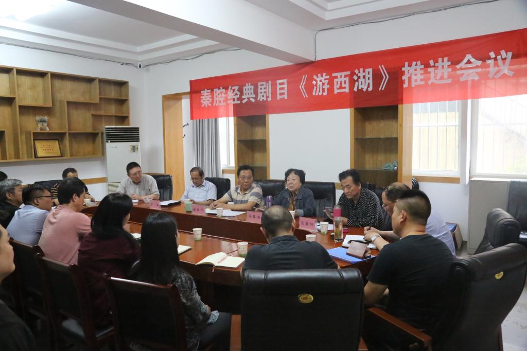 近日,陕西艺术职业学院复排秦腔经典剧目《游西湖》推进会举行,讨论排演相关事宜,确保剧目9月底正式演出。党委副书记、院长强陆平,国家级非物质文化遗产代表性项目代表性传承人、著名秦腔表演艺术家马蓝鱼先生,著名作曲家、指挥家、胡琴演奏家张新怀教授,院党委委员、副院长罗斌、任玉银,各处室负责人以及《游西湖》剧组人员共同参加会议。会议由任玉银主持。