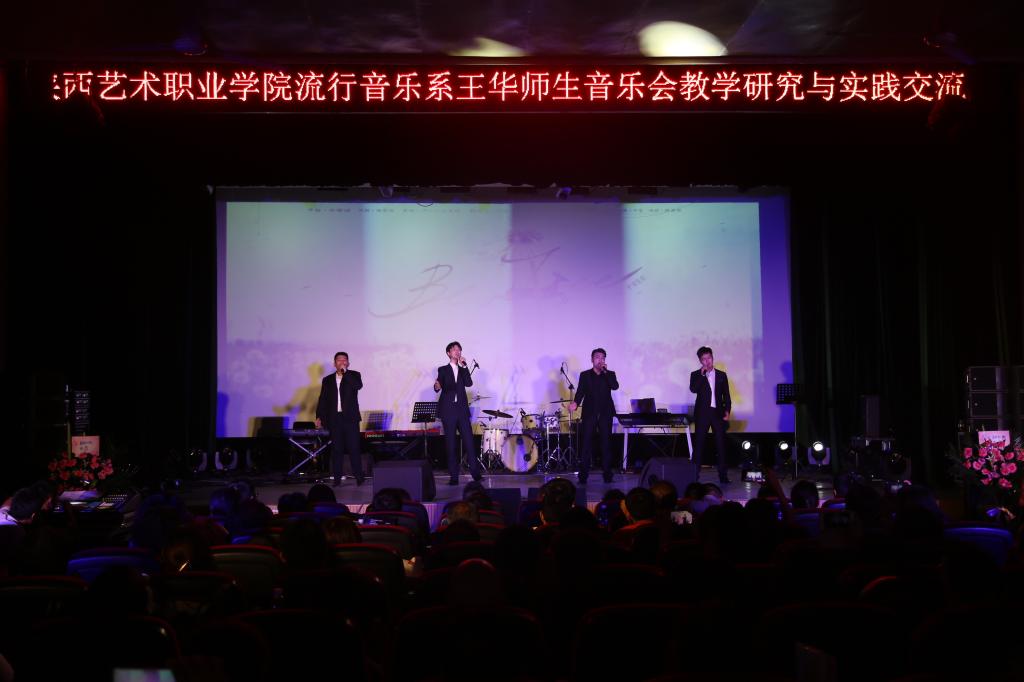 6月17日晚,陕西艺术职业学院文艺南路老校区小剧场掌声雷动、欢呼声不断,流行音乐系“教学研究与实践交流”院校合作专场--王华师生专场音乐会震撼上演。院党委书记王延奇,陕西演艺集团艺术总监、著名歌唱家、表演艺术家米东风,西安音乐学院副院长、著名歌唱家安金玉,院党委委员、副院长罗斌、任玉银,党委委员、干部人事处处长刘艳萍,西安音乐学院现代音乐学院院长谭艺民、六翮书院院长曹渊,科研处处长李永春、流行音乐系直属党支部书记梁延瑞、副主任何鸿雁同流行音乐系师生一起观看了演出。