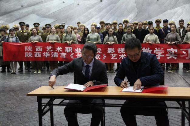 为推动教育改革,提高专业艺术人才培养质量,10月29日上午,我院影视系与陕西华清宫文化旅游有限公司陕西华清宫《长恨歌》艺术团在临潼华清池举行校企合作签约仪式,共同签订教学实习基地协议。陕西华清宫《长恨歌》艺术团团长王军,陕西艺术职业学院影视系副书记胡丽娟、副主任王亮共同出席了此次签约仪式。