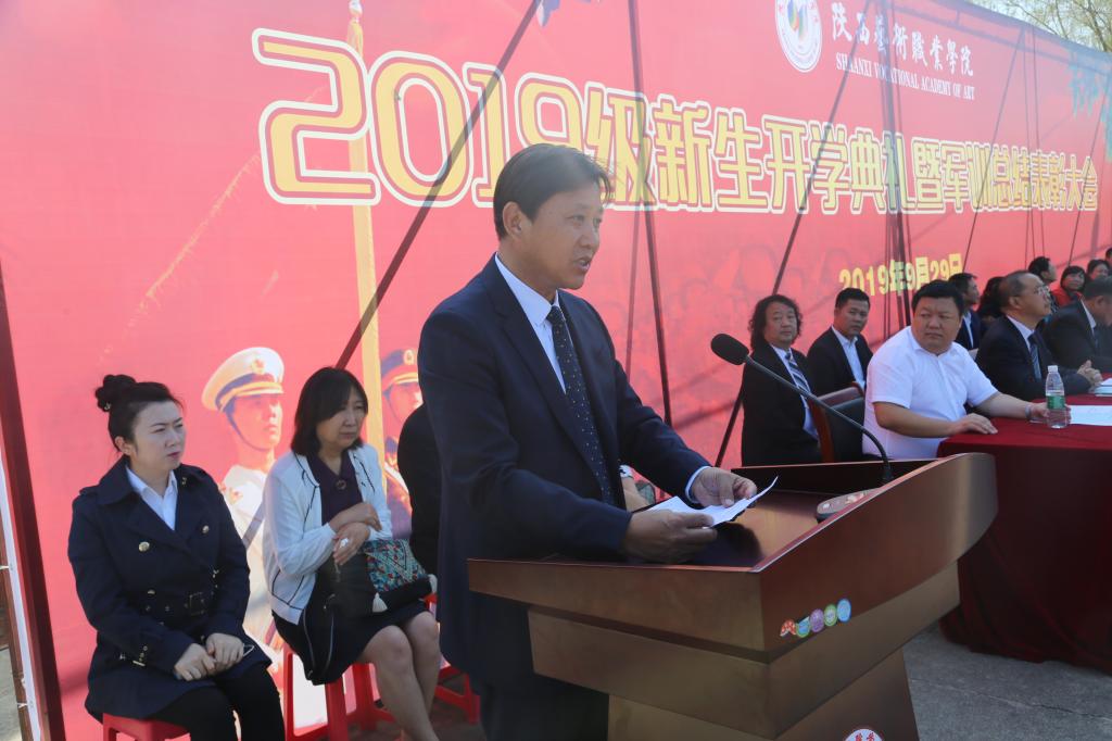 影视系2019级新生杨晨玥代表全体新生发言,表示将牢记“厚德启智、精艺尚美”的校训,发扬不怕苦、不怕累的奋斗精神,让自己艺术梦想起航。美术系主任时振营代表学院全体教师为2019级新生送去美好祝愿,并勉励同学们刻苦奋进,在陕艺这片广阔天地里早日实现自己的艺术梦想。