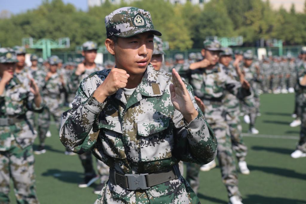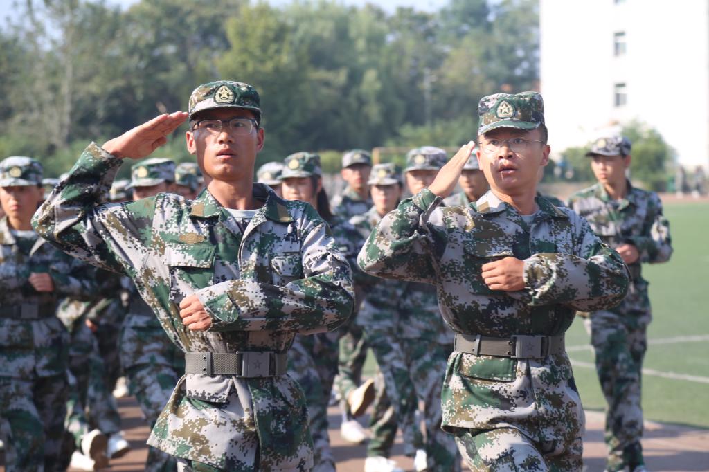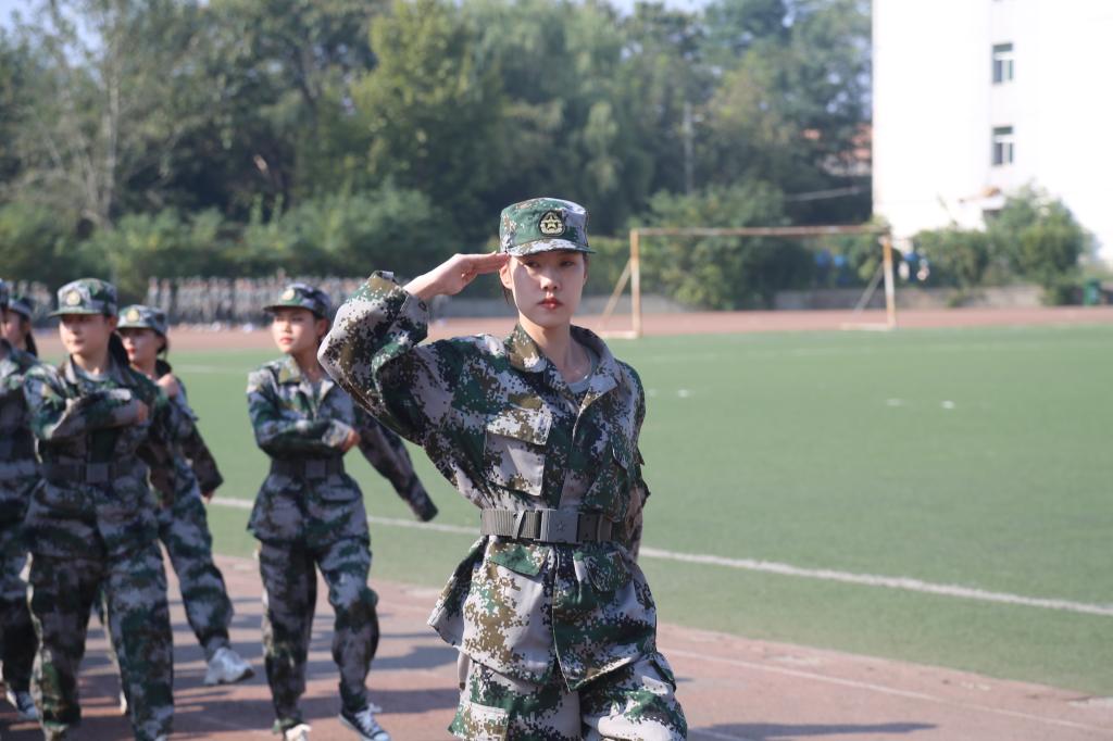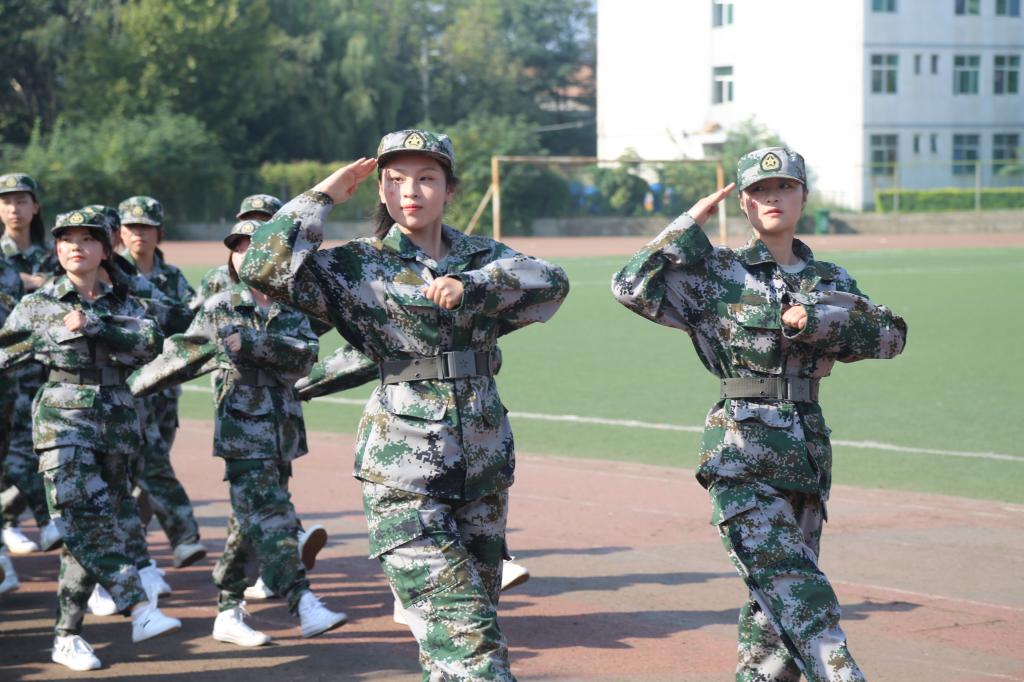 上午9时40分,伴随着高亢的国歌声,军训汇报表演正式开始。16支军训方队在军训指挥员的带领下,他们步履铿锵,目光坚定,身姿挺拔;走齐步,他们整齐划一;走正步,他们步履矫健;喊口号,他们声音嘹亮。学员们用十四天的不懈努力与汗水换来了今天的成绩。随后的队列方阵、军体拳等军训汇报表演中,同学们英姿飒爽、动作到位,展现了陕艺学子的良好精神风貌。