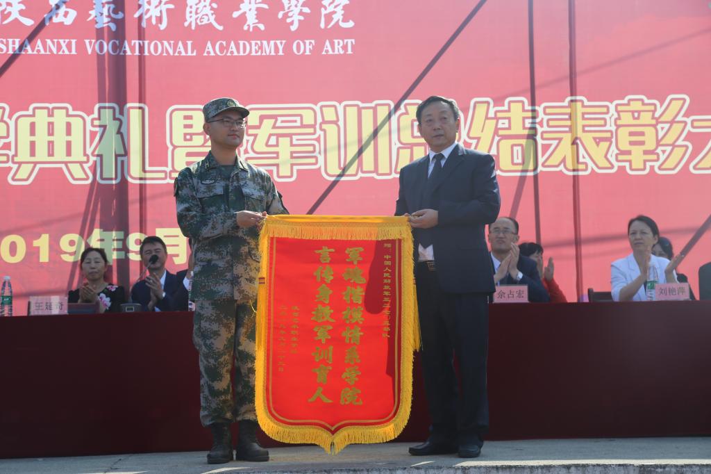 9月29日上午9时30分,陕西艺术职业学院2019级新生开学典礼暨军训总结表彰大会在狄寨校区运动场拉开帷幕。党委书记王延奇,党委副书记、院长强陆平,党委副书记、副院长肖幸海,党委委员、副院长罗斌、佘占宏,党委委员、院长助理兼学工部部长邵鸣,党委委员、干部人事处处长刘艳萍,中国人民解放军32705部队军训负责教官马方龙及各系主任、书记、各职能部门负责人等出席大会。大会由肖幸海主持。