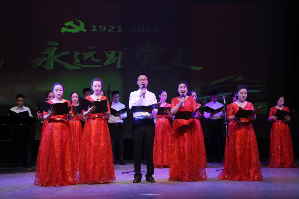 红心向党,红歌嘹亮。会上流行音乐系何鸿雁、音乐系常艳妮、张旭成,戏曲系李锦航、音乐系教师党员小合唱带来的《不忘初心》《山丹丹开花红艳艳》《把一切献给党》《洪湖赤卫队》选段、《党旗更鲜艳》等红色经典曲目,格调昂扬向上、催人奋进。与会党员在跳动的红色音符间追忆了中国共产党领导全国各族人民进行革命、建设、改革的峥嵘岁月。活动进一步激发了广大党员干部在新时代新征程上,不忘初心、牢记使命,为学院教育事业发展砥砺前行的坚定信念。