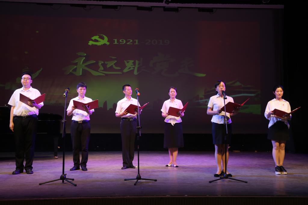 随后,学院举行了“不忘初心、永远跟党走”诵读活动。来自学院7个支部的党员教师带来的《习近平讲故事》《不忘初心、牢记使命》《我爱你,中国》《毛主席:长征诗文朗诵》《我不忘初心,永跟党走》《我的祖国》《歌颂祖国》诵读作品紧扣新时代脉搏,追溯红色记忆,回顾党的光辉历程。一段段扣人心弦的配乐,一句句饱含深情的话语,朗诵党员教师精神饱满、声情并茂,以极富感染力的艺术表现赢得在座所有人的阵阵掌声。