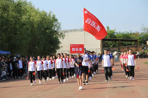8时30分许,伴随着高昂激荡的运动员进行曲,国旗、校旗护卫队和各系部、行政处室代表队方阵依次进入会场,开幕式正式拉开帷幕。学院各代表队围绕“我运动 我健康 我快乐”主题,开始精彩的方阵表演,戏曲系精湛的武功表演、影视系《光荣啊,中国共青团》快闪,舞蹈系融古典、民族、现代等不同类型舞蹈为一体的展示,音乐系学生的街舞、美术系学生活力四射的爵士舞、学管系不断变化的庞大舞蹈阵容、流行音乐系的现场歌唱,思政、基础部的《楼兰姑娘》民族舞表演,行政处室代表铿锵的步伐,饱满的精神,学院师生们用各自专业特长与热情,展示着新时代师生激昂向上,阔步向前的风采。走过主席台,师生们挥舞着手中的国旗,喊着嘹亮的口号,表达对祖国深深的祝福。
