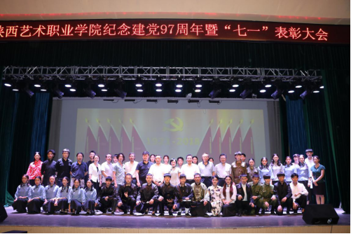 6月29日,在党的“七一”生日到来之际,陕西艺术职业学院庆祝建党97周年暨“七一”表彰大会在学院老校区小剧场隆重举行。表彰在学院党的建设工作中取得优异成绩先进基层党组织、优秀共产党员和优秀党务工作者,并以独特的文艺演出方式为党庆生。学院党委书记王延奇,党委副书记、院长强陆平,党委副书记、纪委书记杨福旺,党委副书记、副院长肖幸海,党委委员、副院长罗斌、任玉银,党委委员、院长助理邵鸣,党委委员、干部人事处处长刘艳萍与全体党员、师生代表共200余人参加大会。大会由强陆平主持。