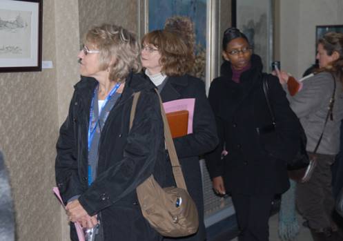 访华团成员参观陕西艺术职业学院师生书画作品展览室