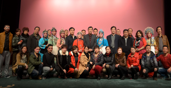 11月初,南郑汉调桄桄剧团部分团员来我院戏曲系进修。11月8日下午该团成员在小剧场为我院师生演出折子戏《杀狗劝妻》(打娘)、《马房放奎》、《程夫人闹朝》等。院长刘胜辉、副院长肖幸海、戏曲系主任尉霞、招就处处长朱志清等领导亲临剧场观看。演出受到学院领导、老师、学生的热烈欢迎,特别是汉调桄桄团72岁老演员许新萍老师演出的《程夫人闹堂》一剧,获得了大家的一致称赞。