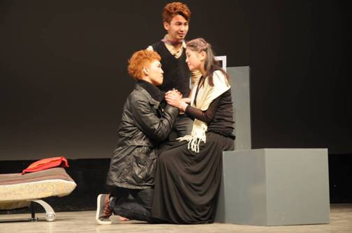 接下来是由影视表演专业同学带来的独幕剧《可怜的菲伽》,小品《公厕英雄》,参加演出的学生入学仅一年多,从他们幽默诙谐、精彩表演中看得出他们的进步与成长。特别是由师生共同表演的小品《守候》,给人以启迪,也是对当今充满友爱、和谐社会的歌颂。整场演出掌声不断、精彩连连。