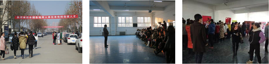 1月7日上午,我院 2015年中专毕业生就业双向选择洽谈会(双选会)分别在鱼化寨新校区和文艺路校区同时举行。陕西华清池长恨歌艺术团,西安市大唐芙蓉园、陕西秦皇大剧院演艺有限公司、江苏通州市歌舞团、杭州宋城艺术团等30多家用人单位、80余位参会代表现身双选会,择选企业需要的合格毕业生,我院副院长肖幸海、招生就业处李旭阳处长、就业科科长梁娜等等参加会议。