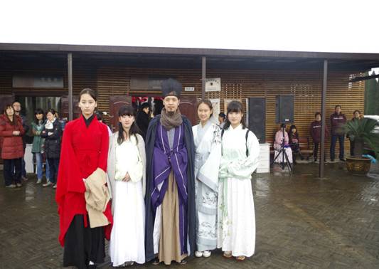 韵攸汉服社成员在活动现场合影