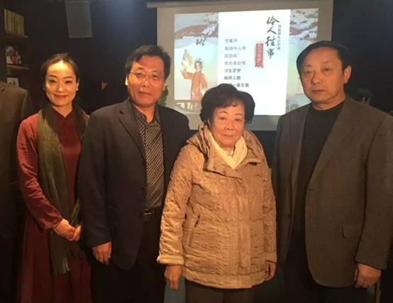 王延奇、强陆平、齐爱云(左一)与马蓝鱼先生(右二)在艺术分享会上