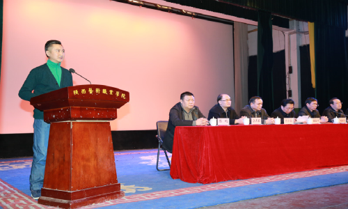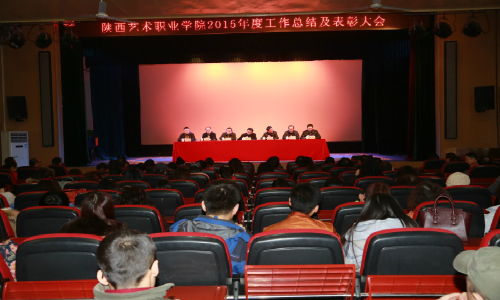 2016年1月16日,陕西艺术职业学院2015年工作总结大会暨表彰大会在文艺南路小剧场举行。院长、党委副书记强陆平,党委副书记、纪委书记杨福旺,副院长肖幸海、罗斌、佘占宏、任玉银,院长助理、学生处处长邵鸣以及全体教职员工参加了会议。会议由党委副书记、纪委书记杨福旺主持。