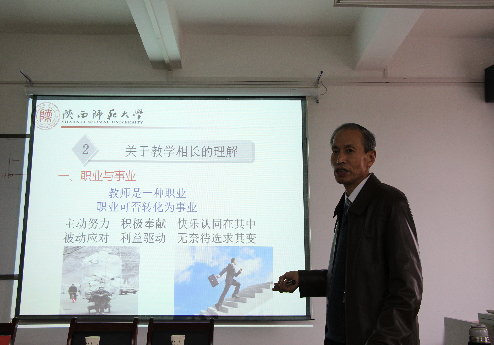 2015年12月10日,文化基础教学部邀请陕西师范大学知名教授傅钢善来我院开展题为《教学相长与科研相长》的讲座。讲座由基础部思政教研室主任范攀主持,基础部部分教师和学院其他部门部分教师参加了本次讲座。