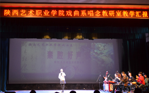 2015年12月3日下午,戏曲系唱念教研室在老校区小剧场举行了“秦腔好声音”秦腔名段唱腔交流擂台赛。戏曲系各年级共计50名学生参加了本次活动。戏曲系主任尉霞、副主任梁安建、唱念教研室主任李卫平等11位戏曲系唱念教研室教师担任评委,教务处实训科聂养勋老师和部分学生家长担任本次活动嘉宾。