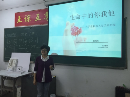 在5.25大学生心理健康日到来之际,美术系举办“生命中的你我他—大学生和谐人际关系”的专题讲座。从提升心理素质的角度,开展和谐人际关系的培养,将美术系心理健康工作深入到学生中去。