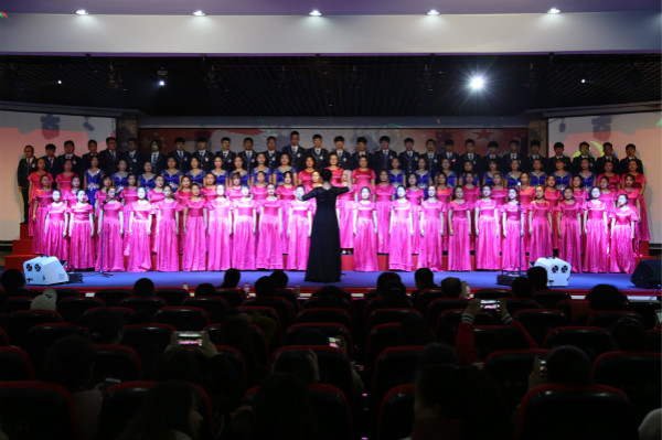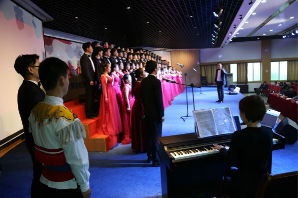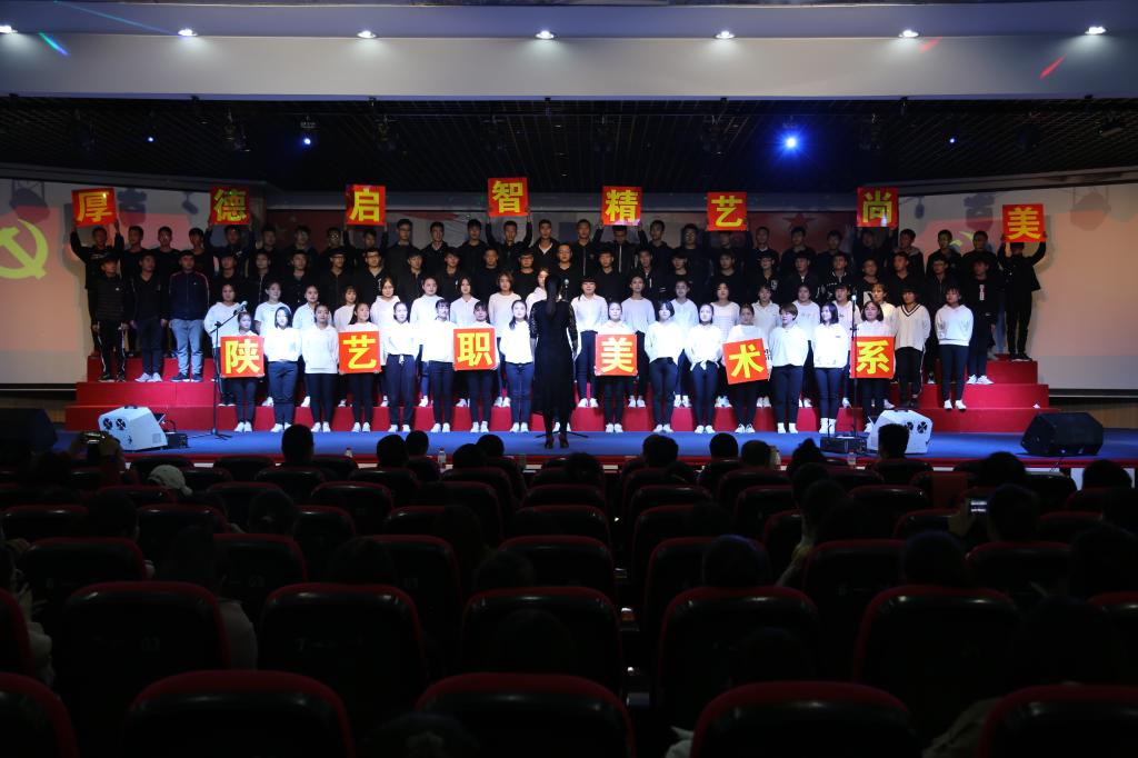 10月25日,陕西艺术职业学院狄寨原校区学术报告厅歌声飞扬,经过一个多月的学唱、排练,由学院党委宣传部、学工部共同主办的学唱新创歌曲《社会主义核心价值观之歌》合唱比赛激情开唱,喜庆党的十九大胜利召开,凝聚新时代新征程学院发展力量。来自全院各系中、高职组共12支参赛队参加了此次比赛。学院党委书记王延奇,党委副书记、院长强陆平,党委副书记、纪委书记杨福旺,党委委员、副院长佘占宏、任玉银,党委委员、院长助理兼学工部(学生处)部长(处长)邵鸣以及全院各系部、各部门师生代表观看了此次比赛。陕西传媒网、腾讯大秦网、西部网等多家社会媒体对合唱比赛进行了现场报道。