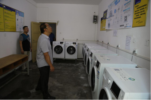 检查组分别对学生宿舍、洗衣房、琴房等进行实地检查