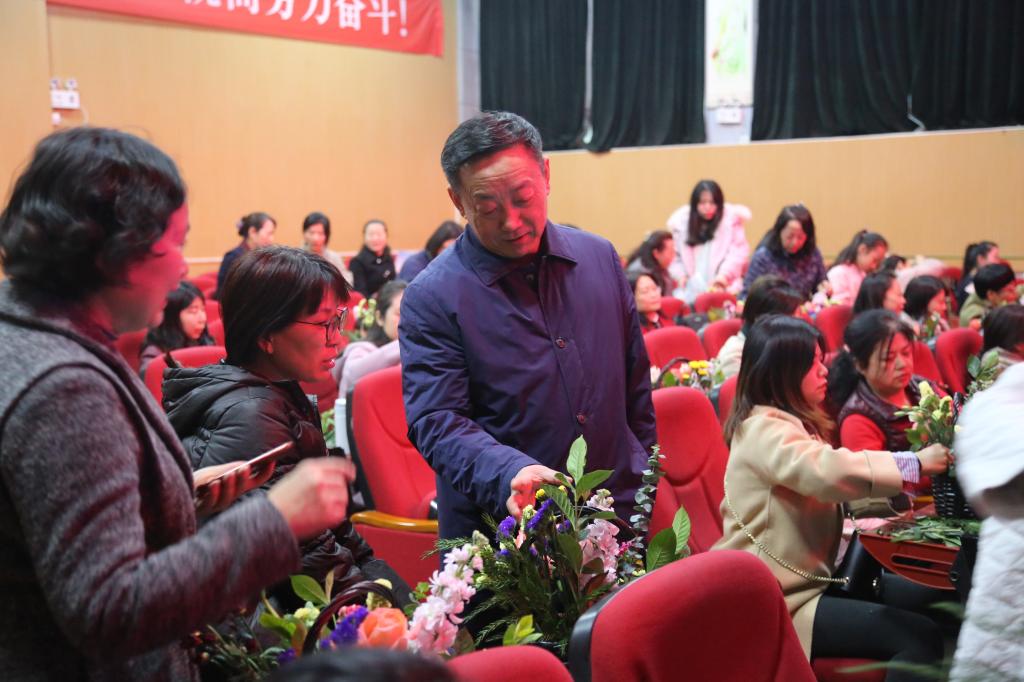 | 学院党委书记王延奇点评教师们的插花作品并为广大女教职工送上节日祝福 |