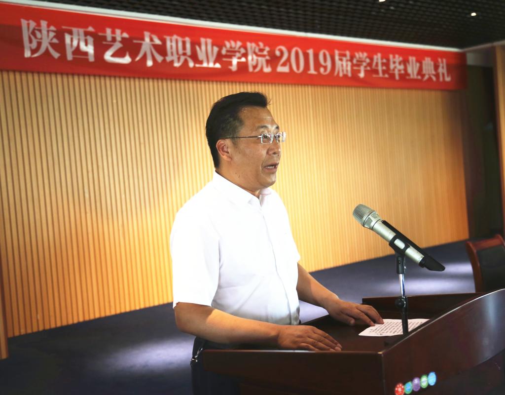 任玉银宣读了《陕西艺术职业学院关于2019年吕国伟等815名高职学生准予毕业的决定》和《陕西艺术职业学院关于2019年曹浩翔等227名中职学生准予毕业的决定》。