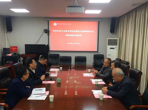 10月23日,日本音乐审议会委员长海野雅路,陕西省教育基金会副理事长、秘书长孙卫国,西安音乐学院原培训中心主任王少军一行来我院交流访问。党委副书记、院长强陆平,党委委员、副院长任玉银以及党政办主任许仲举、教务处处长马琳等陪同。
