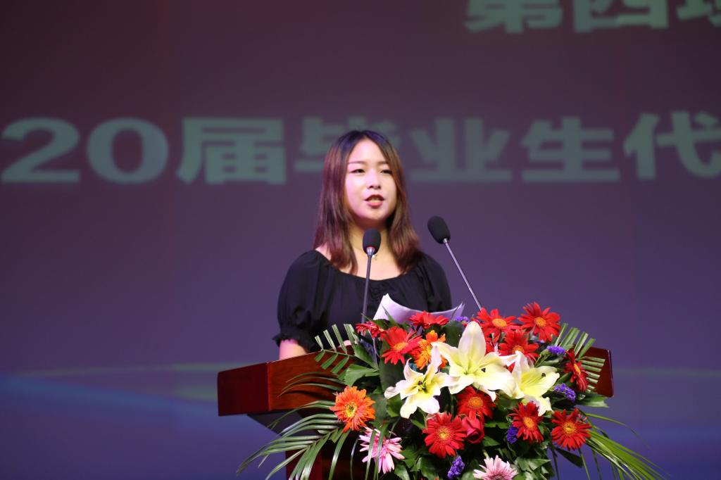 2020届毕业生代表杨婉莺代表毕业生进行了发言,用深情的话语表达对母校的留恋与感恩之情以及对未来的期许与祝福。