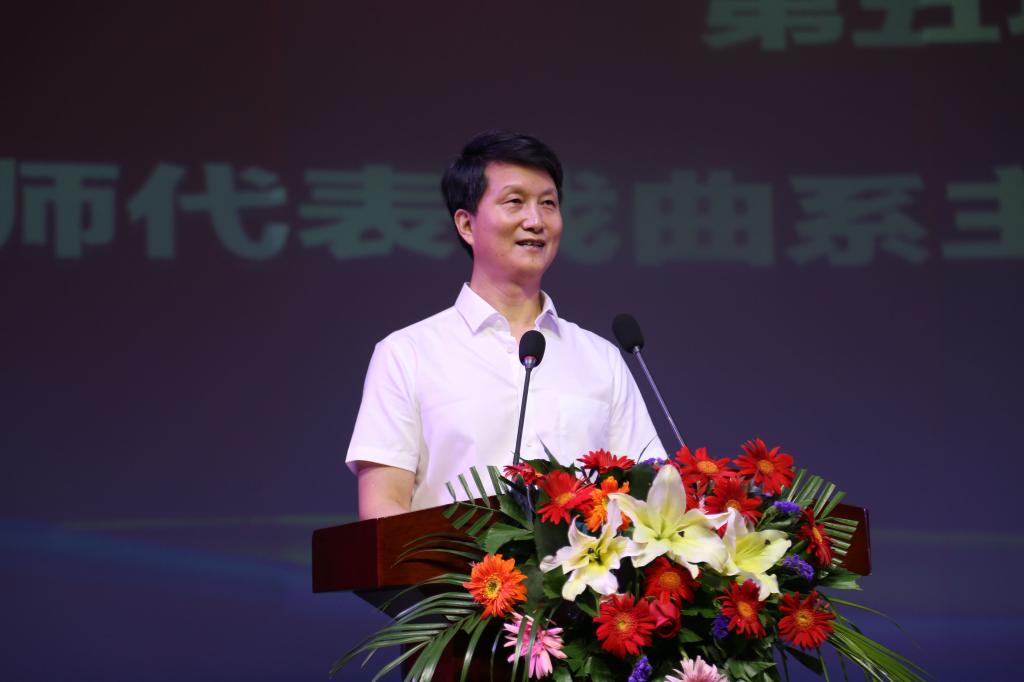 戏曲系主任李旭阳作为教师代表发言。他寄语毕业生坚定理想信念,践行终生学习理念,严于律己、宽以待人,常怀感恩之心,为梦想矢志奋斗。