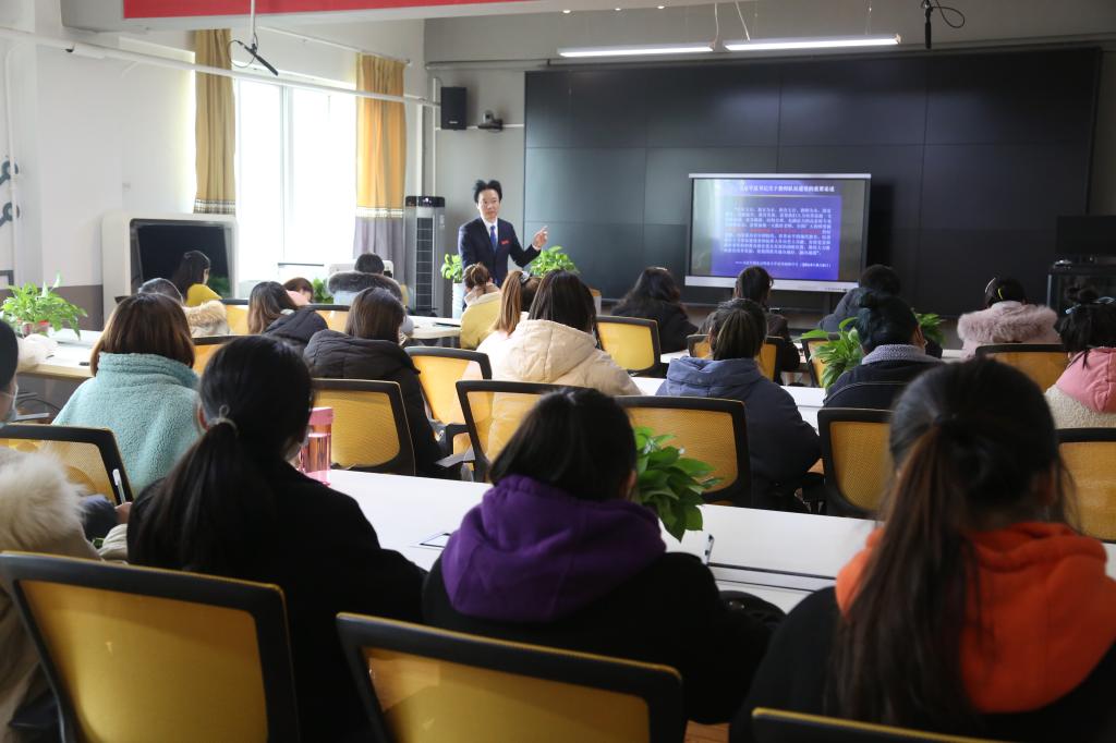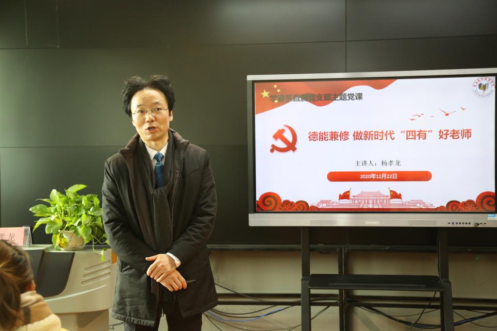 12月22日,院党委副书记、院长杨孝龙为学管系直属党支部讲“德能兼修 做新时代‘四有'好老师”专题党课。学管系直属党支部副书记张莉及支部全体党员、入党积极分子代表参加学习。