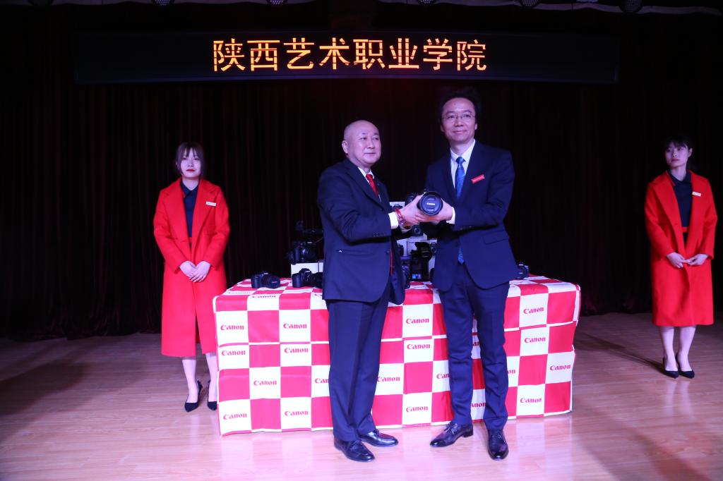 佳能(中国)有限公司华北影像信息产品部总经理张嶷潇、华北区域总部高级经理田延岭、西安分公司代理总经理郭光、华北影像信息产品部经理齐春宏、西安影像信息产品销售及终端管理科侯广佳以及陕西艺术职业学院教务处处长马琳、影视系直属党支部书记胡丽娟、影视系副主任张敏等与影视系专业教师及各专业学生代表参加仪式。