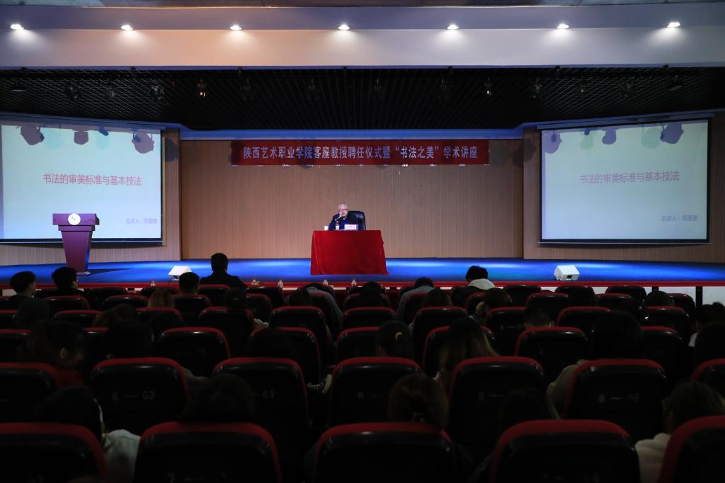 聘任仪式结束后,在场师生聆听了郑墨泉所作的“书法的审美标准与基本技法”学术讲座。讲座从审美标准、方法、条件、常识,五体书法欣赏、基本技法、临摹与创新等方面,让人领略不同时期书法的艺术之美,激发师生书法创作热情,提高书法艺术素养。