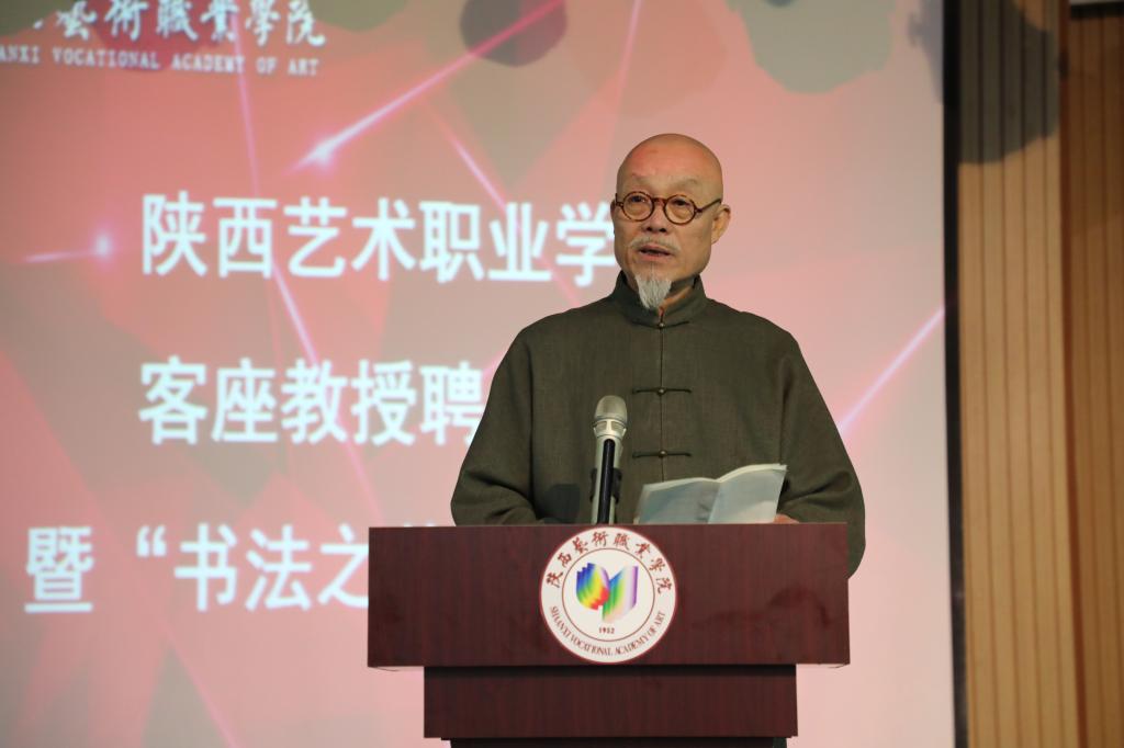陈建贡在受聘代表发言中,对陕西艺术职业学院开设书法专业方向表示祝贺。他指出,书法艺术是中华民族的重要文脉之一,文脉连着国脉,文运与国运相牵,继承和弘扬中华优秀传统文化要靠青年人来担当。他希望,同学们要坚定信念,在根植传统基础上,守正创新,弘扬中华美学精神,为时代明德画像,奋斗圆梦。