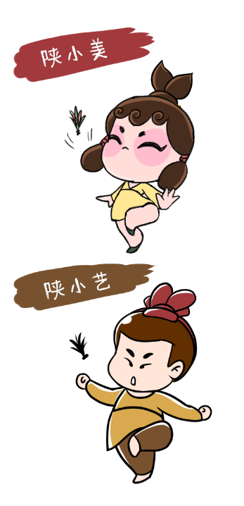 吉祥物设计以秦代武士与唐代仕女形象为创意原型,其头饰以“艺”的首字母“Y”为造型,融古典与现代审美元素为一体,根据“厚德启智 精艺尚美”校训,男女形象分别取名“陕小艺”“陕小美”,寓意青春向上的陕艺莘莘学子,在梨园故地,赓续传统,弘扬体育精神,勇攀艺术高峰。