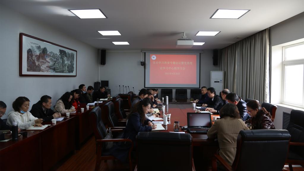 4月26日,我院在文艺南路校区五楼会议室召开党史学习教育专题会议暨党委理论学习中心组学习会。党委副书记、院长杨孝龙主持会议。党委委员、副处级以上干部参会。