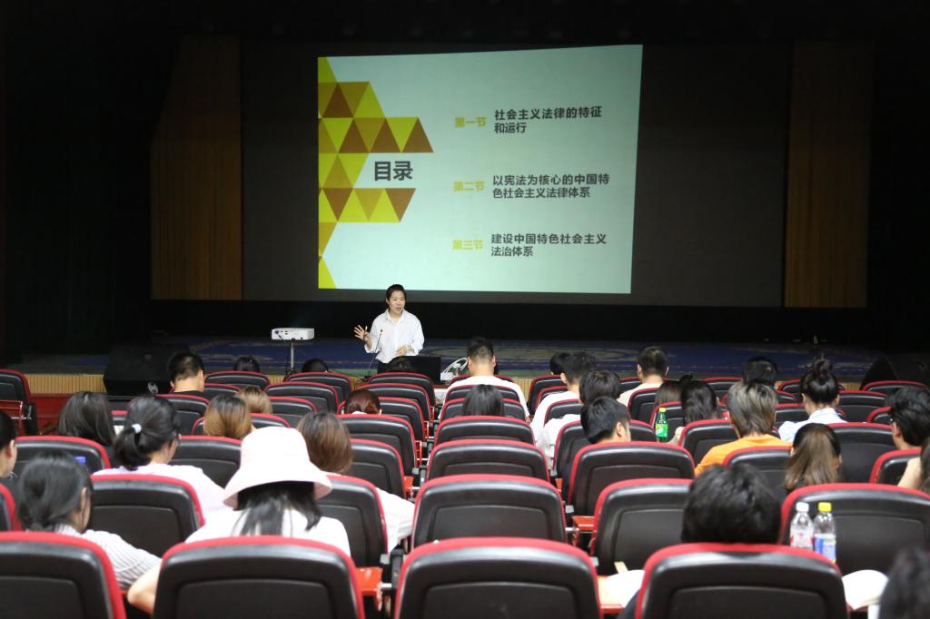 课上,范甜甜以学生“新闻述评”为课堂切入点,点燃学生主动学习兴趣,学生走上讲台为大家播报“神舟十二号”相关信息,通过有效互动增强学生民族自信心和自豪感。随后,范甜甜对宪法基本原则和知识进行了详细讲解,使广大学生对宪法作为我国的根本法和治国安邦的总章程有了初步了解,并使学生逐步树立法律思维。课堂上,范甜甜授课思路清晰、表述完整、与学生互动频繁、课堂氛围融洽,取得了良好教学效果。