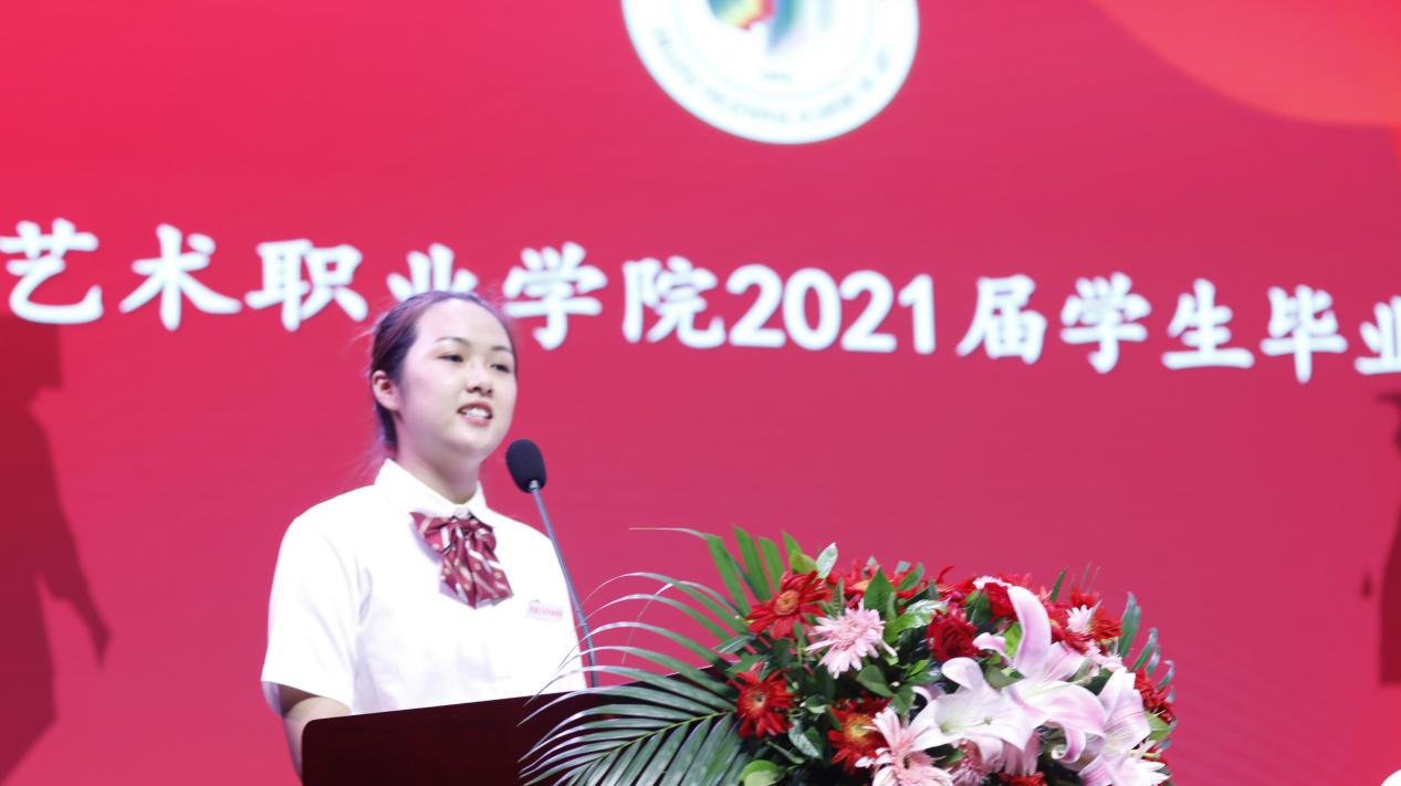 颁奖仪式后,学管系郭郁华同学代表毕业生发言,表达了对母校师生的感恩和祝福之情。她回忆了在学校的求学之路,并表示将传承陕艺精神,勇敢接过时代的接力棒,用奋斗展现陕艺青春风采。
