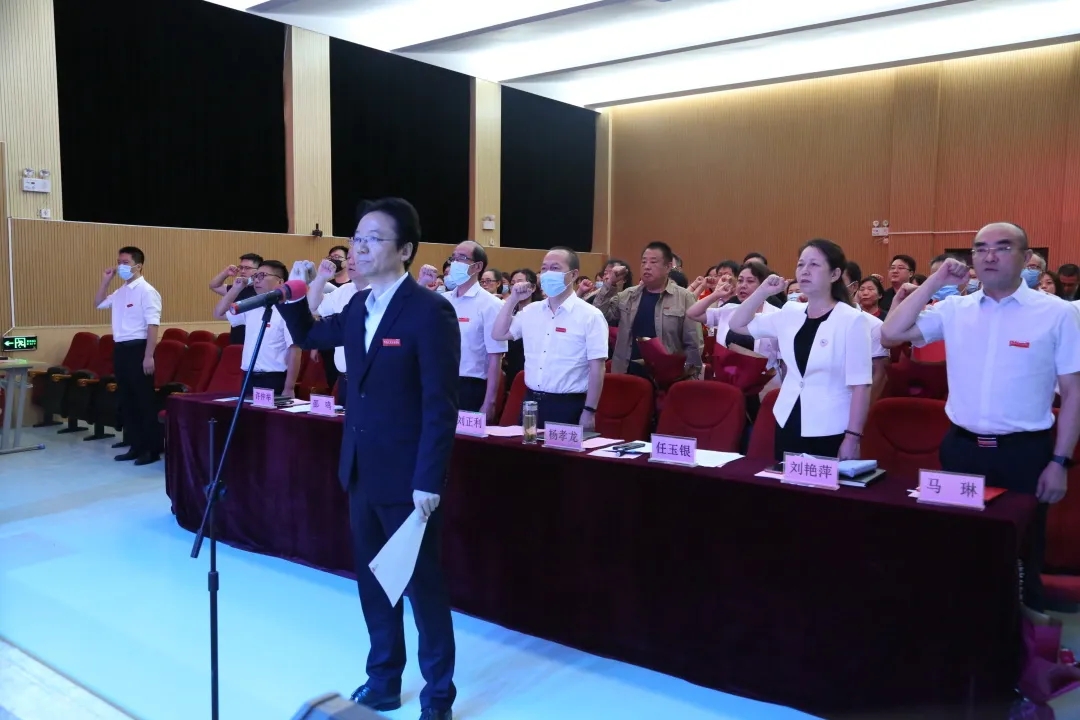 全体参会人员在杨孝龙带领下,面对鲜艳的五星红旗,进行集体宣誓,重温教师誓词。