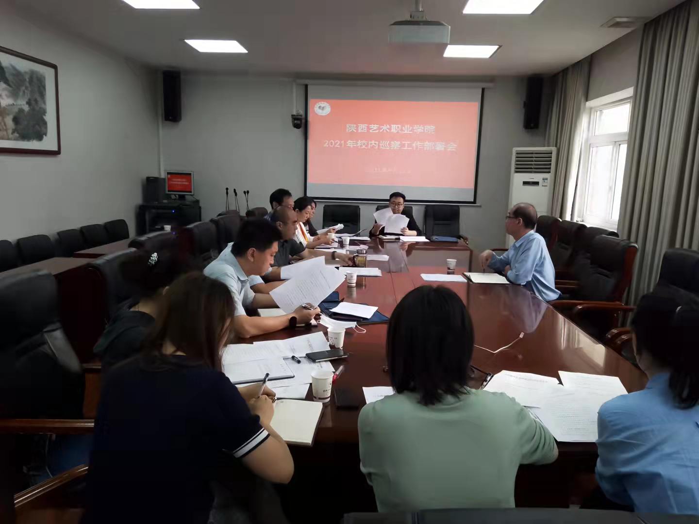 2021年校内巡察小组组长许仲举,副组长贺波、马琳、黄敏、杨芳及巡察组全体成员参加会议。