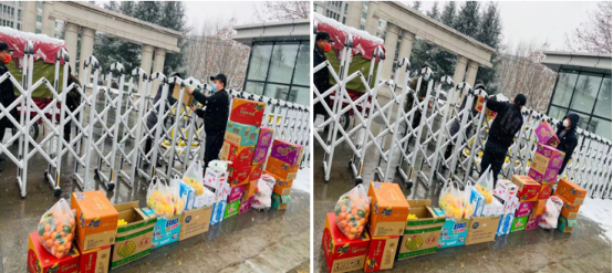 在了解到狄寨校区师生需要生活物资支援的情况后,后勤处立刻行动起来,第一时间寻找物资采买渠道,加班加点,做到疫情防控和服务保障工作“两手抓”。12月25日,由马磊带队将狄寨校区专用餐票和桶装方便面、各类水果、饼干和面包、牛奶和酸奶等足量物资送往狄寨校区。