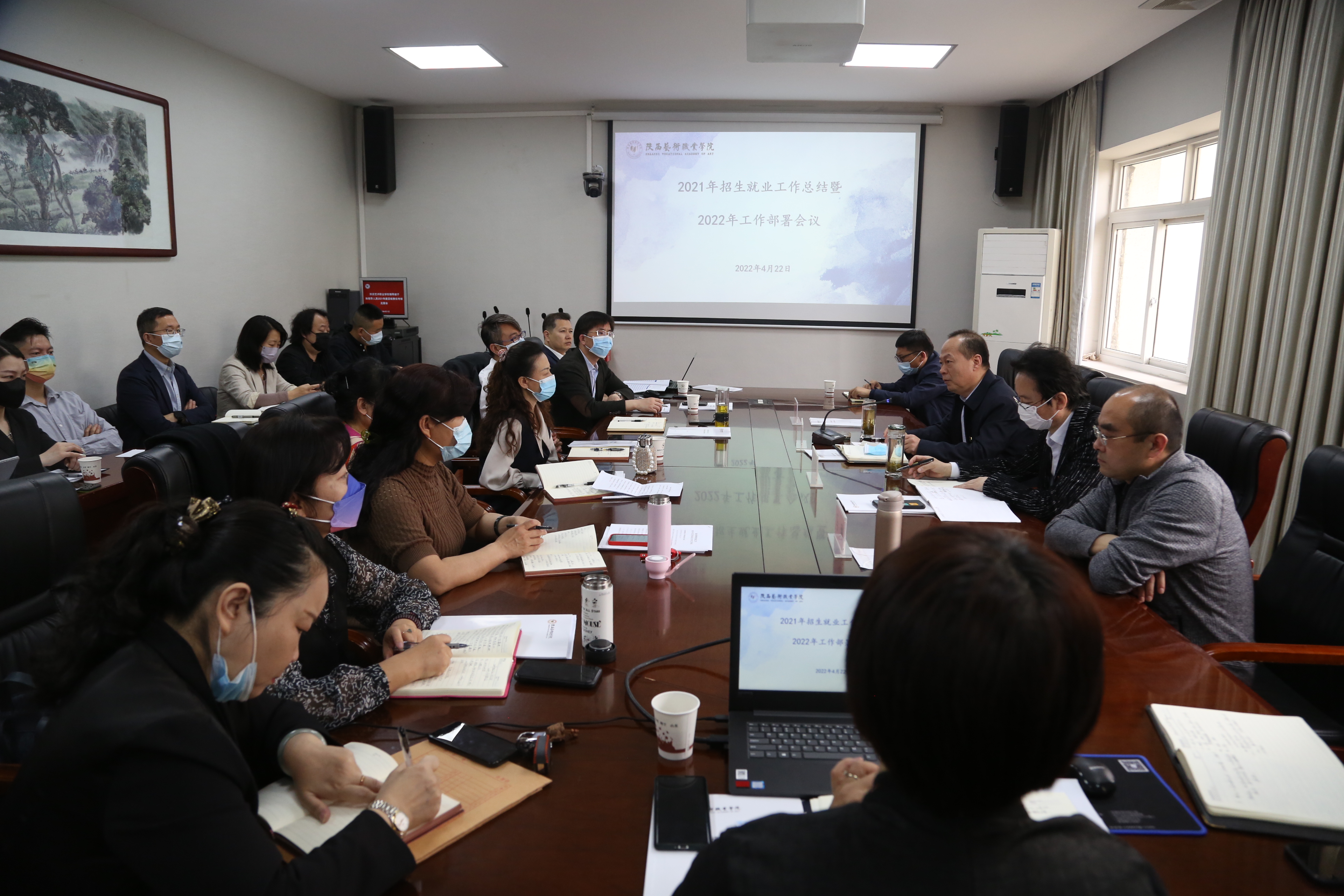 4月22日,我校2021年招生就业工作总结暨2022年工作部署会议在文艺南路校区召开。校党委书记刘正利,党委副书记、校长杨孝龙,党委副书记佘占宏,副校长马琳出席会议,相关职能部门负责人,各二级院(部)书记、院长、各二级学院辅导员代表、招生就业处全体人员、教务处副科级以上人员等参加会议。会议由马琳主持。