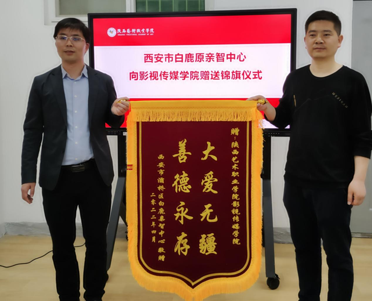 西安市白鹿原亲智中心向影视传媒学院赠送锦旗表达谢意