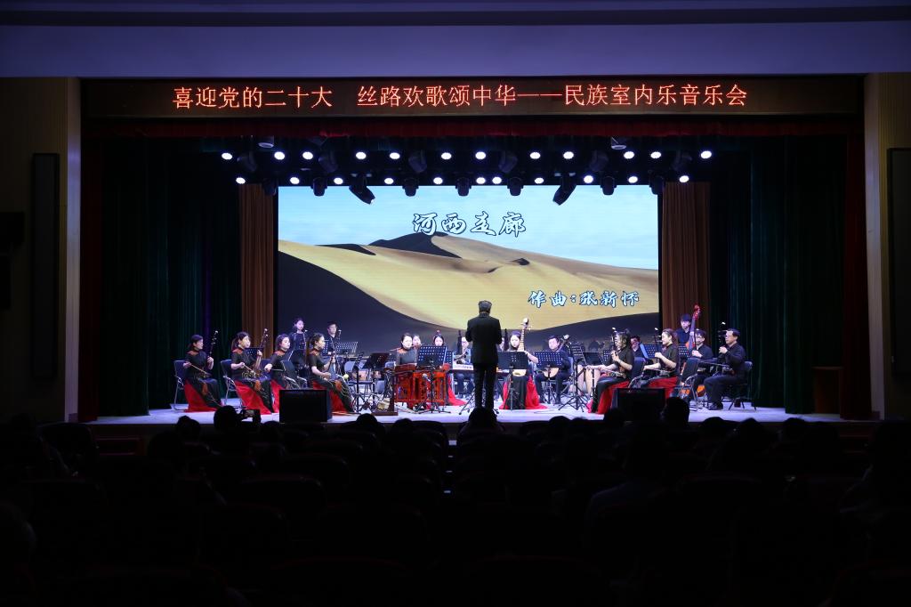 此次音乐会由陕西艺术职业学院教授、著名作曲家、指挥家、胡琴演奏家张新怀执棒指挥,陕西音乐室内乐乐团担纲演出,紧扣“喜迎党的二十大 丝路欢歌颂中华”主题,演奏