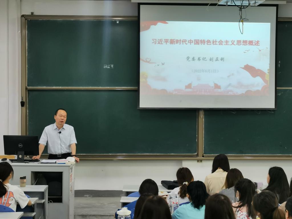6月1日上午,校党委书记刘正利在狄寨原校区深入思政课堂为学前教育专业学生讲授了《毛泽东思想和中国特色社会主义理论体系概论》课程中的“习近平新时代中国特色社会主义思想”内容。党委委员、组织部部长、马克思主义学院院长许仲举、音乐学院党总支书记郝叶妮、学前教育学院党总支书记梁延瑞、院长刘慧敏、美术与设计学院党总支书记张莉及马克思主义学院部分专兼职教师一起聆听了思政课。