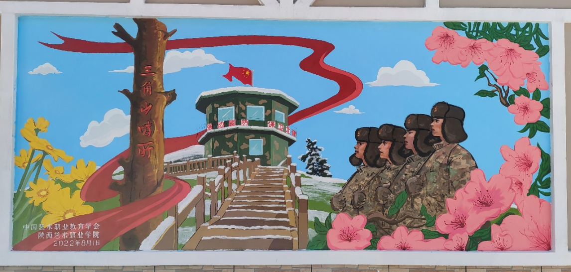据悉,暑期,学校美术与设计学院师生除走进三角山哨所外,还由该院院长曹小劲、副院长王圣龙带队,远赴内蒙古自治区阿尔山市参加了由文化和旅游部科技教育司、文化和旅游部人才中心、内蒙古自治区文化和旅游厅指导,中国艺术职业教育学会、阿尔山市人民政府主办的第三批“2022绘出美好助力振兴 阿尔山乡村墙绘与写生活动”。学校师生创作了“新心向荣•花样年华”“二十四节气”主题系列墙绘作品,描绘美丽乡村,推动文化和旅游部定点帮扶的阿尔山市明水河镇西口村建设成为北方知名艺术乡村,助力乡村振兴。同时,也在艺术实践中见证了新时代山乡巨变,在“深入生活、扎根人民”中进一步坚定了文艺为民情怀。