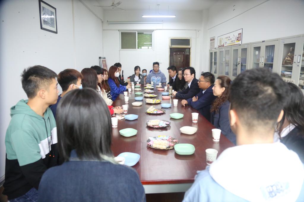 之后,杨孝龙深入影视传媒学院、美术与设计学院等各二级学院,在见面会、茶话会轻松的氛围中与2022级新同学亲切交流。杨孝龙表示,开学典礼我们在“云端相见”,在疫情反复的形势下,我们今天能够线下相会,得益于同学们与全体教职工的共同努力,希望同学们牢固树立“安全健康第一”意识,做好个人防护,共同守护好我们“陕艺大家园”。交流中,杨孝龙向同学们深入分析了国家大力推进职业教育改革与发展的“东风”,为同学们成长成才带来的“新机遇”,希望同学们深刻认识职业教育“前途广阔、大有可为”,以陕艺为实现梦想新的起点,“少年自有凌云志,不待扬鞭自奋蹄”,明确自身奋斗目标,增强自身成才的内驱力,珍惜大学人生的黄金时光,德技并修,用实力面对未来职场,成就人生梦想。同学们纷纷汇报了入学以来的收获,表示为学校从1938年成立的陕甘宁边区民众剧团走来,一代代“陕艺人”赓续红色血脉,始终与时代同行、为人民而歌的光辉历史而自豪,为成为一名新“陕艺人”而激动,将弘扬学校光荣传统,坚定信心,努力钻研技艺,为繁荣文艺百花园而努力。