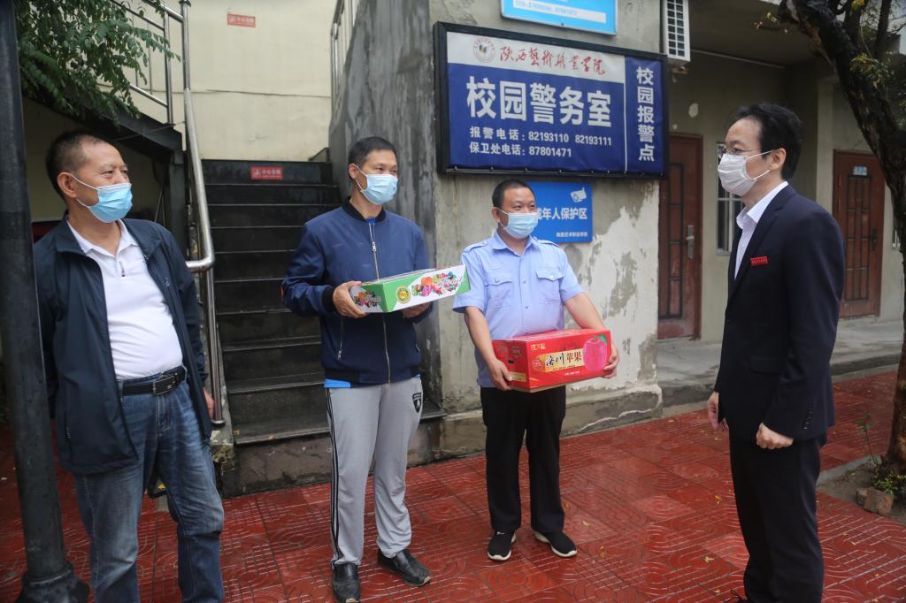 随后,杨孝龙深入文艺南路校区和狄寨校区学生宿舍、教学楼,为学生们送上节日的祝福和慰问品,与同学们亲切交谈,详细了解同学们在学校学习、生活等情况,为他们能够着眼大局,严格遵守学校各项疫情防控规定,彰显新时代大学生的责任与担当点赞,并勉励同学们积极配合学校落实好各项疫情防控举措,持续在疫情防控“思政大课”中,磨砺精神品质,获得成长力量,精进专业,在努力攀登艺术高峰中实现自己的梦想。