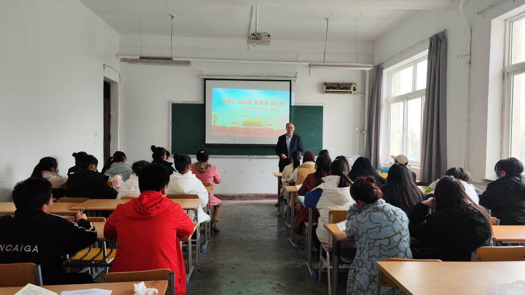 11月18日上午,校党委副书记佘占宏在文艺南路校区,为学生讲了题为《新时代 新征程 新纲领 新任务》的党的二十大精神专题思政课。