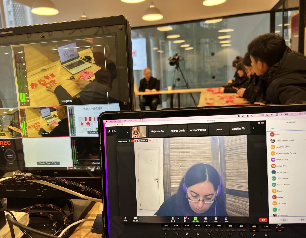 11月23日上午,陕西艺术职业学院与阿根廷拉普拉塔国立大学孔子学院首场线上交流课正式开讲。主讲人为我校客座教授、民俗文化学者、陕西省节庆文化促进会顾问左其诚。此次活动是由我校国际合作与交流处牵头组织,教务处、美术与设计学院和影视传媒学院共同承办的国际友好学校校际文化交流。阿根廷拉普拉塔国立大学孔子学院院长龙敏丽、阿根廷当地学者、墨西哥友人及孔子学院学生56位外国友人参加本次活动,一起感受了中国传统剪纸文化。对进一步促进中国文化推广与增进中阿友谊具有积极推动作用。