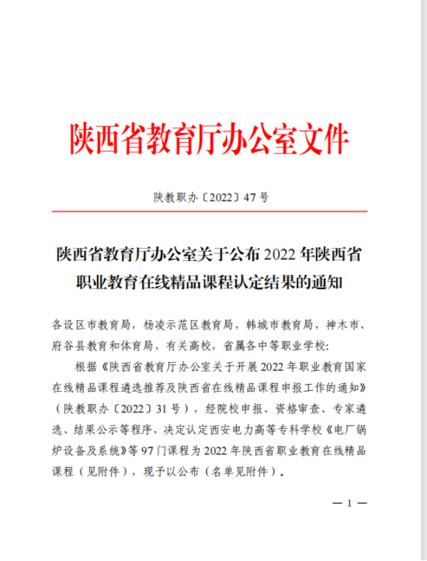 开展职业教育在线精品课程认定工作是陕西省教育厅落实《关于推动现代职业教育高质量发展的意见》《陕西省职业教育改革实施方案》,全面贯彻《深化新时代教育评价改革总体方案》和《职业教育提质培优行动计划(2020—2023年)》的具体举措。自我校开展陕西省在线精品课程申报工作以来,充分认识职业教育在线精品课程建设的重要意义,持续落实立德树人根本任务,适应“互联网+职业教育”新要求,加大课程建设支持力度,在常态化疫情防控背景下,积极发挥课程应用效果,形成线上线下相结合的教学模式,保证人才培养质量,以更高的站位、更严的标准、更实的举措,不断健全课程建设与管理制度规范,完善课程监督机制,切实提升在线课程质量。
