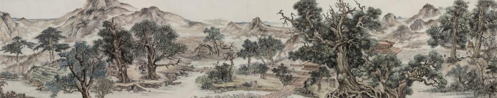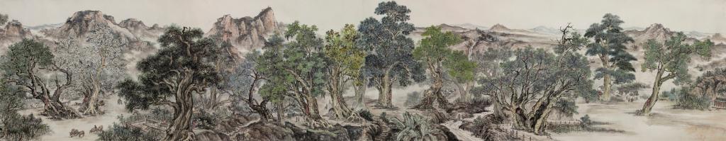 作品选取了全国34个省级行政区最具有代表性的100棵古树为表现对象,以黄河(长江)为纽带贯穿全幅,以华夏名山秦岭、泰山、华山、太行等为背景,其间穿插体现革命文化的一大会址、南昌起义纪念地、古田会议旧址、遵义会议旧址、七大会址、延河桥、韶山冲、梁家河等近30处,穿插体现传统文化的轩辕庙、仓颉庙、孔庙、孔林、老子说经台、长城、司马迁祠、山西大槐树旁的寻根祭祖园等以及各民族的特色民居几十处,还有体现社会主义先进文化的现代化建筑群。