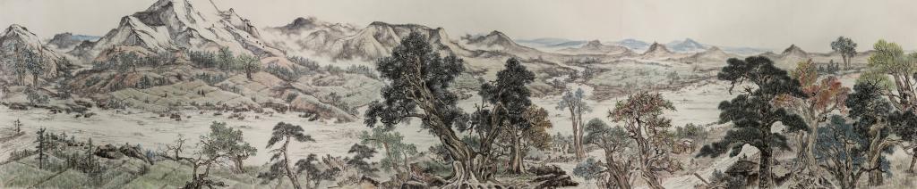 该画由陕西艺术职业学院主创、陕西书画研究会协创,高1.45米,长71米,由陕西艺术职业学院原副院长、陕西书画研究会会长肖幸海教授主持,集结二十余位画家集体创作而成。作品分十段装裱,每段单独成幅,无缝对接即为长卷,分别为《日出东方》《绿水青山》《勃发雄起》《擎天泽地》《圣光照耀》《韶华辉映》《祖脉绵延》《林深地旷》《小康家园》《天远海阔》。